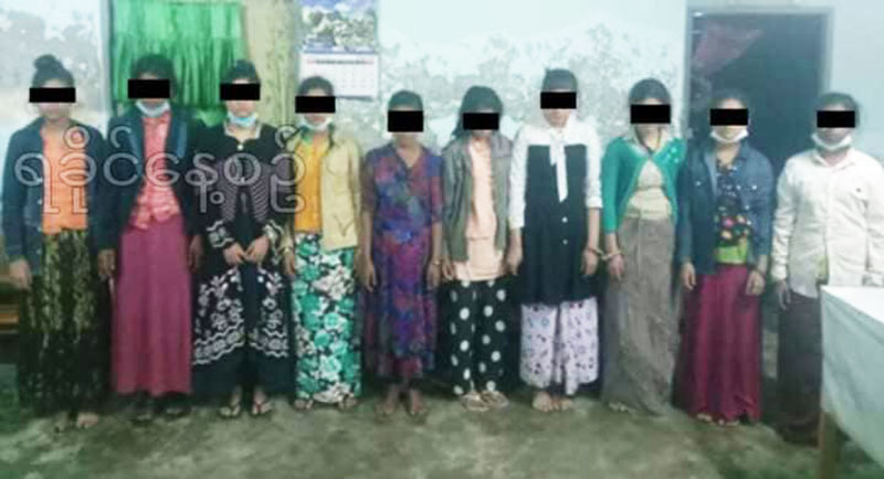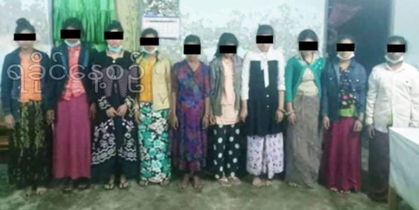 Acting on a tipoff, authorities investigated a hut in a farm field outside Aung Tine village, finding 26 men and 39 women there, said an official from the state police force.