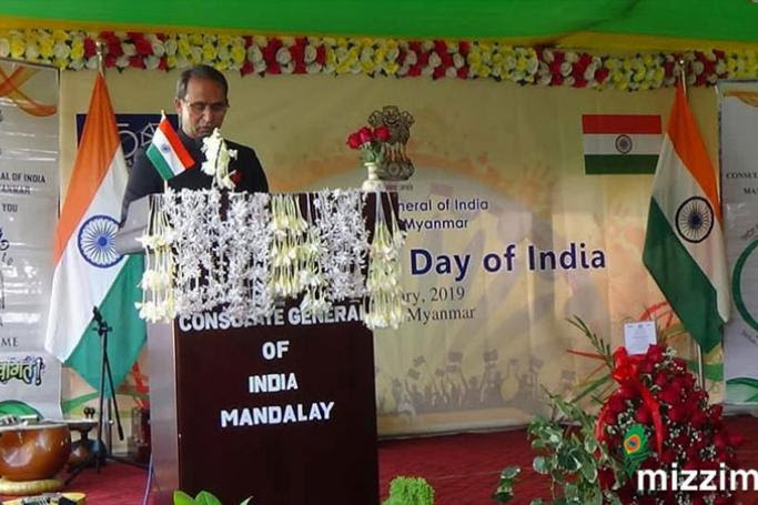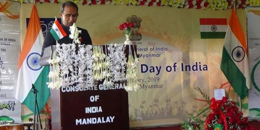 Consul General Mr. Nanda Singh Bhaisora raised the Myanmar national flag at 10 a.m. and he then read out the message sent by the Indian President for this occasion.