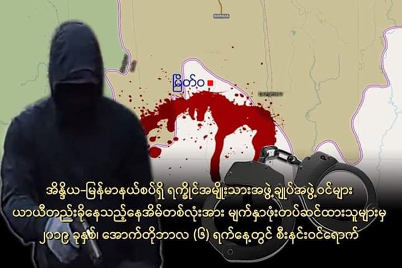 Khaing Thukha said that the AA soldier was referred to Myeik Wa police station on the Myanmar side, opposite from Arthan Rifle’s troops of India on October 10, and according to information from locals, he assumed that Kyaw Win Naing was killed on October 12 at a public rest house in Myeik Wa village.