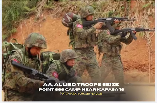 The Arakan Army (AA) and its allied forces took control of Point 666 camp, which serves as a checkpoint for the Kapas 16 located in Padaung Township, Bago Region, on January 28, around 5:00 pm, as confirmed by an AA military official to Narinjara on January 30.