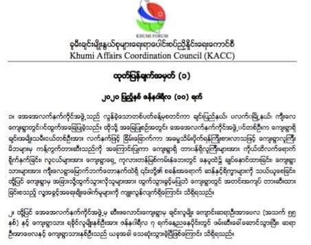 Earlier the KACC, in a statement, accused AA members of detaining a Chin teacher named U Arbay Hla (55 years old) from Se Palong village and two Rakhine nationals from Kyat Oowa village on 7 January.