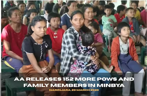 Kyaw Thiha — The Arakan Army (AA) released an additional 152 prisoners of war (POWs) and their family members on March 10, following their capture during the battle for Minbya in Rakhine State.