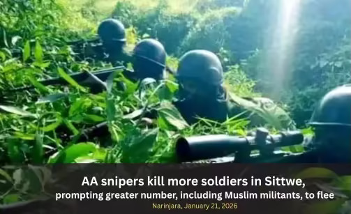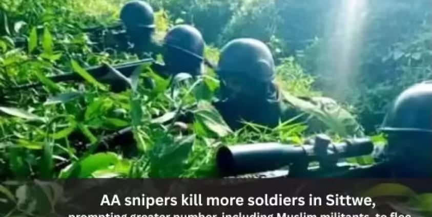 Thinzar Nwe — In Sittwe, Rakhine State, junta soldiers, police, and conscripted Muslim soldiers have been fleeing after suffering heavy casualties from AA snipers.