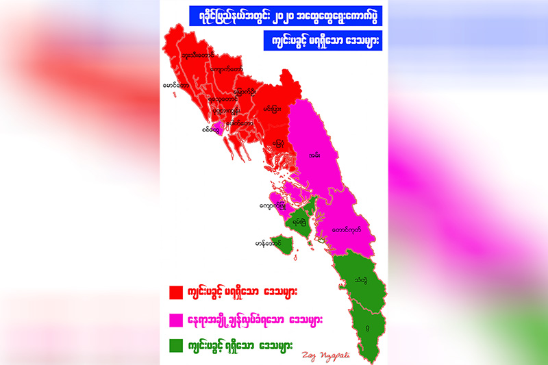 The UEC also partly canceled four village-tracts in Sittwe Township, four wards and 49 village-tracts in Kyaukphyu Township, three wards and 25 village-tracts in Ann Township and ten wards and 52 village-tracts in Taunggup Township.