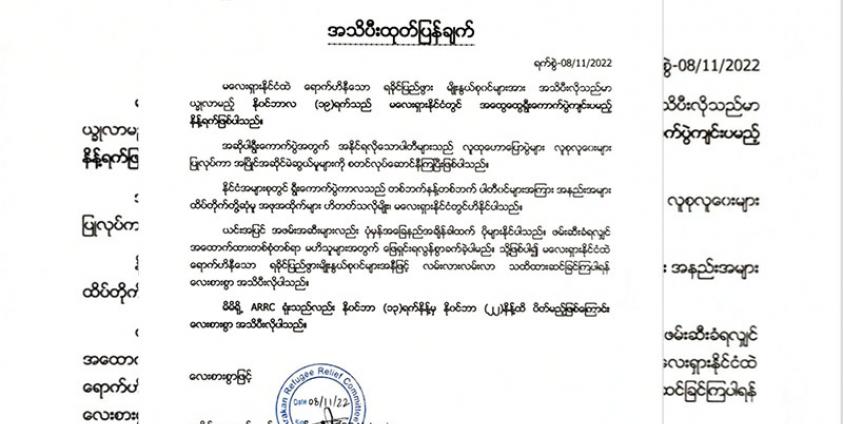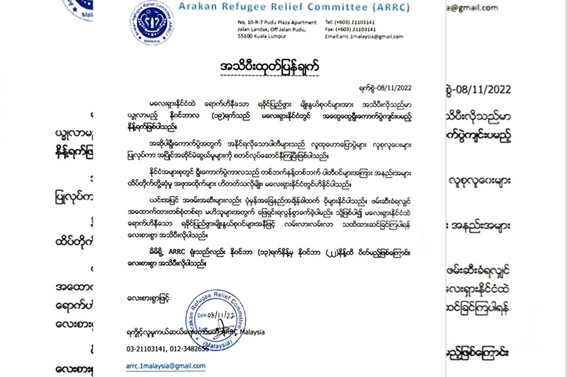 The Arakan Refugee Relief Committee (ARRC) issued a statement on Tuesday urging Arakanese people in Malaysia to be cautious when travelling during that country’s upcoming general election, scheduled to be held on November 19.
