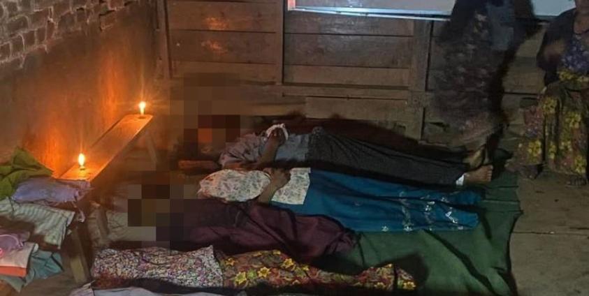 A junta airstrike instantly killed a family of six when it hit Saizang Village in Tedim Township, northern Chin State at around 11:00 pm on 9 April.