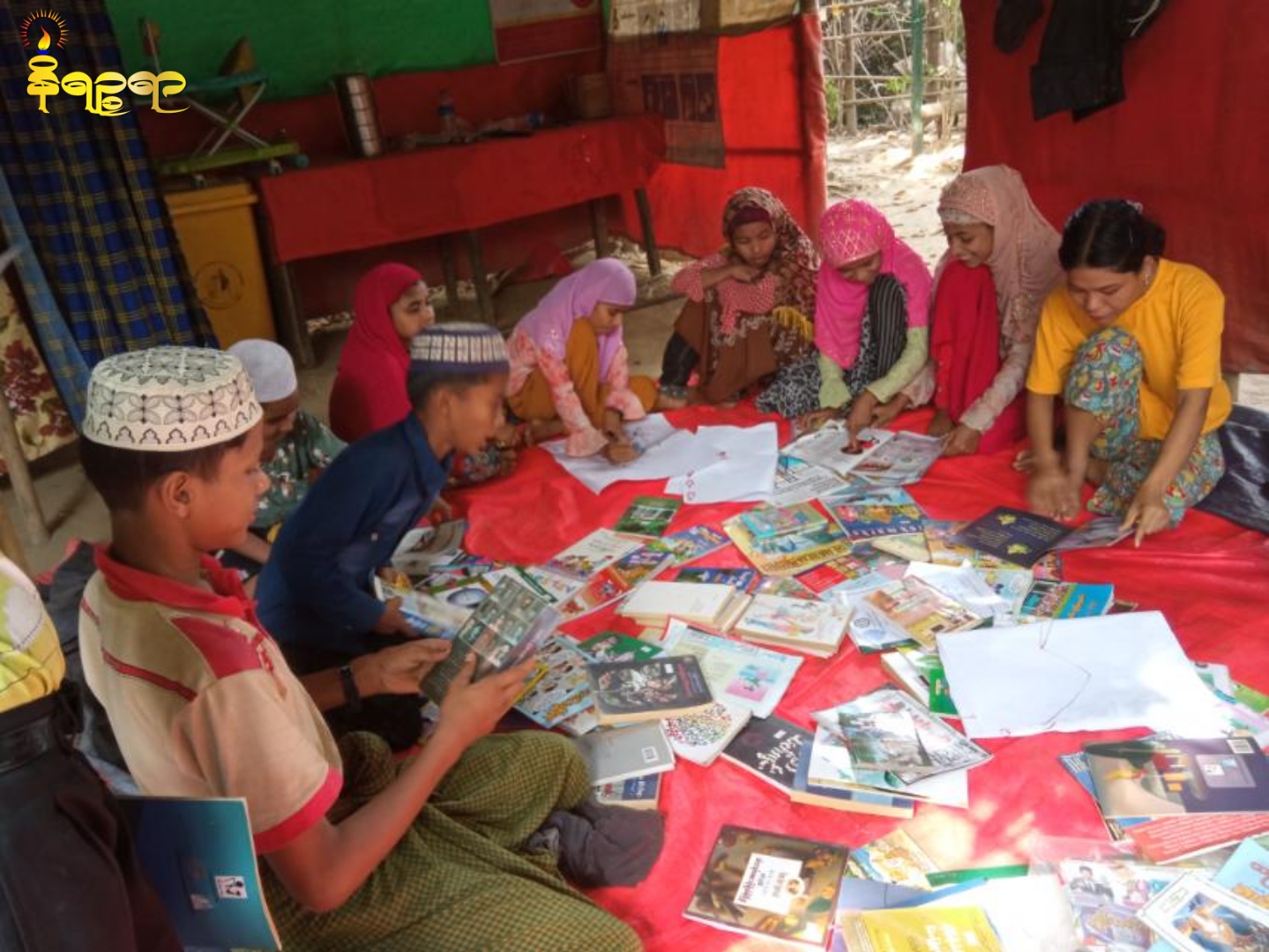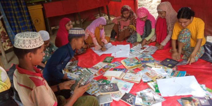 Members of Alin Thaset (A piece of Light) library at 4 mile ward of Maungdaw township in Rakhine State have initiated a mobile library program under which the library is moved to nearby villages twice a week and helps people to borrow their favourite books for reading.