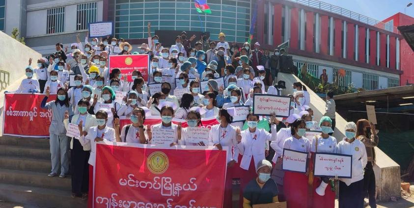 A local in Mindat Township said: “More civil servants joined the protest today. Health staff in uniform also participated. The number of staff from the forest department and education department has increased. We will continue making our demonstration.”