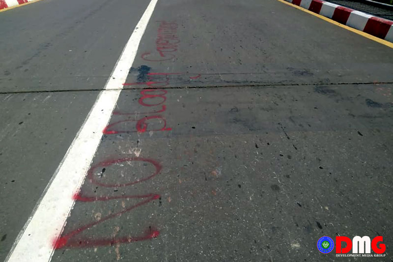 According to local residents, slogans like “Let’s oppose fascism,” “No Bloody Government,” “Stop civil war immediately” and “Down with fascist military” have begun cropping up either spray-painted on walls and bridges or stuck to lampposts and traffic lights in the aforementioned townships.