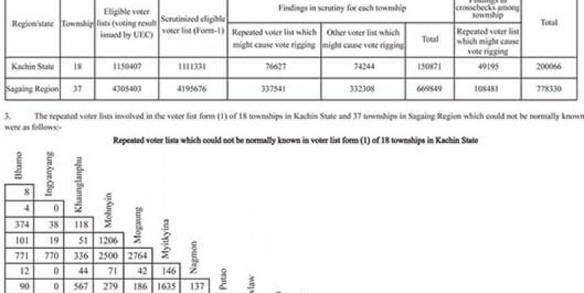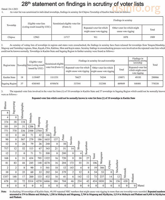 6. UEC released statement on 30 December 2020 that the document used by Tatmadaw to prove irregularities were not final documents used during November 8, 2020 elections.