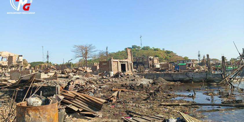Another Kyauknimaw villager who also lost his house said to DMG: “Those who lost their homes are temporarily staying in nearby houses. However, the threat of airstrikes is still present and gatherings of large groups of people are not safe. For now, locals from surrounding communities are sending food packs to the villagers who lost their homes, but there are many long-term challenges beyond just rebuilding homes. The difficulties are substantial.”