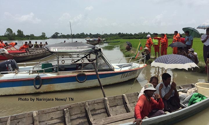 According to the local residents, the accident took place on Zi Kondan creek under Rathidaung township, where 13 passengers survived. The ferry sank at 9.15 am when it was crossing the creek carrying 17 students.