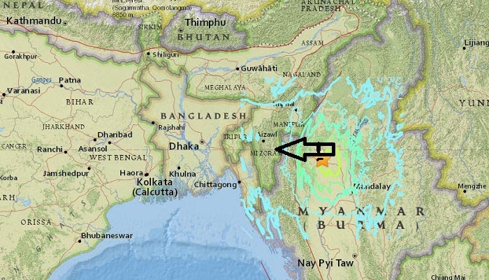 Burma bordering northeast Indian States also felt the quake, where the residents of Guwahati, Shillong, Kohima, Aizawl cities came out of their residences in the morning hours. A small tremor also reportedly