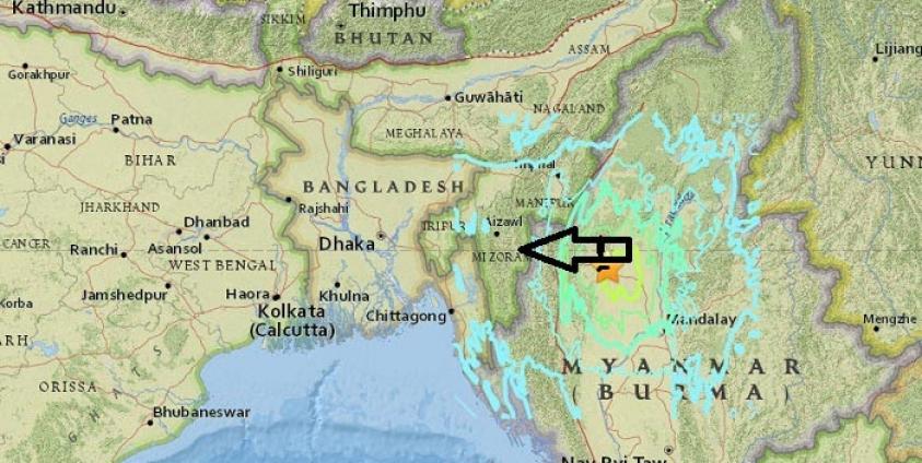 According to the US Geological Survey, the epicentre of the earthquake was determined 57 km away from Khampat in Myanmar, which hit in Burmese local time at 7.41 am.