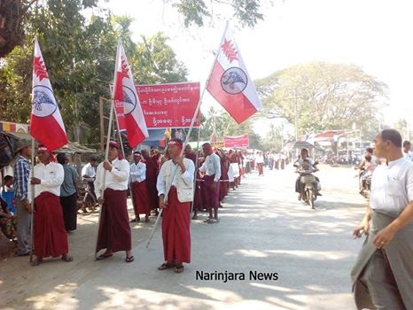 The protest was led by the Arakan National Party’s Sittwe Township Branch. The protesters marched starting from Wingabar field along the main road and then go-around the town via Kon-tann street and Set-yon-su street.