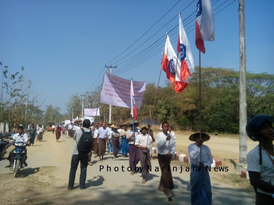 “Paddy prices have dropped to a very low rate [but] there are no buyers at all. As a result, the farmers are having a hard time returning money that was borrowed from the government’s Agricultural Bank,” said U Hla Aung Sein, one of the leaders of the February 25 demonstration. At the gathering, farmers from 20 villages called on the government to help bring up the market price for paddy or oversee more favorable loan conditions.
