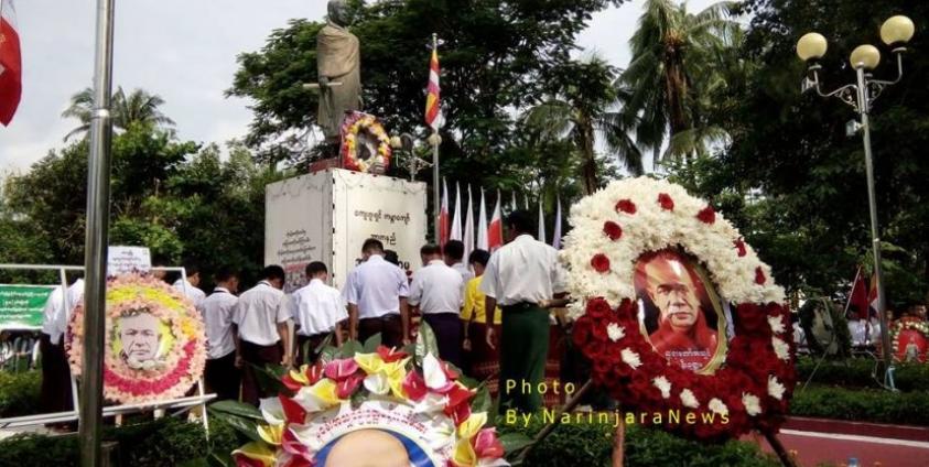 Members of the Rakhine State government offered food to monks in the morning, and then laid wreaths at U Ottama Park.
