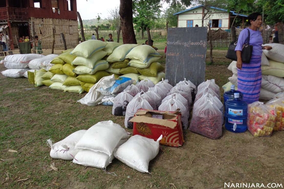 A Temporary Assistance Committee for Refugees Affected by War formed by Sittwe Township community based organisations delivered donations to war refugees sheltering at Sapar Seik Village in Kyauktaw Township, Arakan State on 26 April.