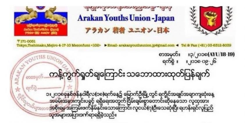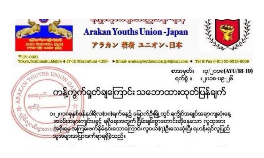 In the statement, the association claimed that it was an ungraceful political act to file an additional charge against the released eight Rakhine youths and demanded the National League for Democracy (NLD) government to immediately halt the oppression of the Rakhine people.
