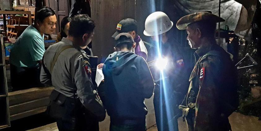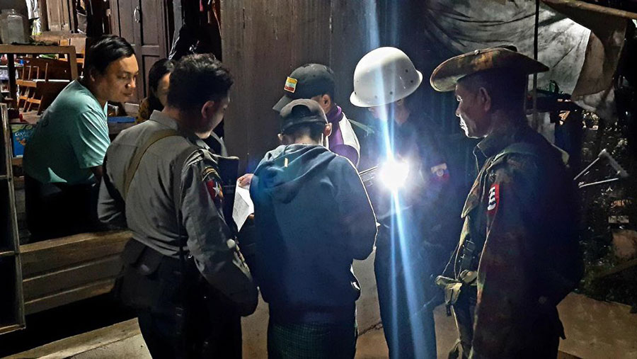 Photo: Myanmar regime officials check overnight guest lists in Thabaung Township, Ayeyarwady Region. (Photo: MOI)