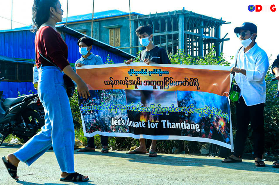 Youths in Arakan State have been collecting donations for the victims of a large fire in Thantlang town, Chin State, that was set by the Myanmar military late last month.