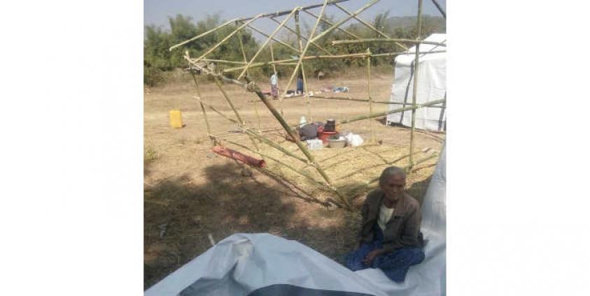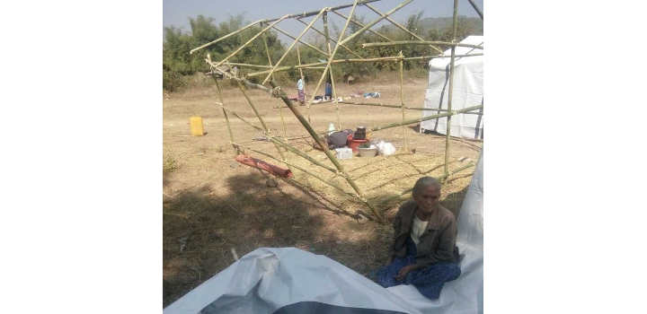 IDP camps are normally erected with the pieces of bamboo, tarpaulin and other available materials. The Sa Nyin camp is constructed at the village sport ground.