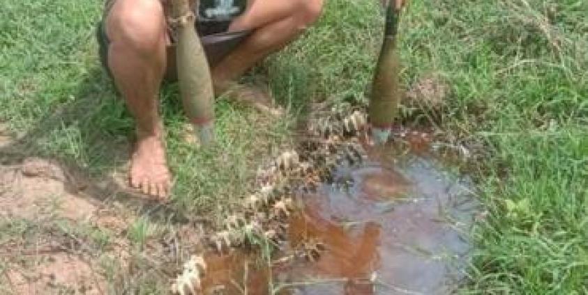 “Villagers found 40 RPGs in a hole in the paddy field in Ngasanbaw village located about 10 miles north of Yathaedaung Township, and the rest in other places near the village. We are worrying that there are also some unexploded mines. Soldiers always use this road and have told the people not to touch them, as they may explode. A military camp, which is located about 1.5 miles north of Ngasanbaw village, has been stationed there for more than one year,” said U Aung Tun Win, the village administrator.