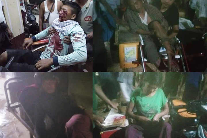 They were hit by the shell at around 8 p.m. while attempting to take shelter in a protective bunker. One of the injured, 18-year-old Mg Nu Wai, received a severe injury to his left eye and nose.