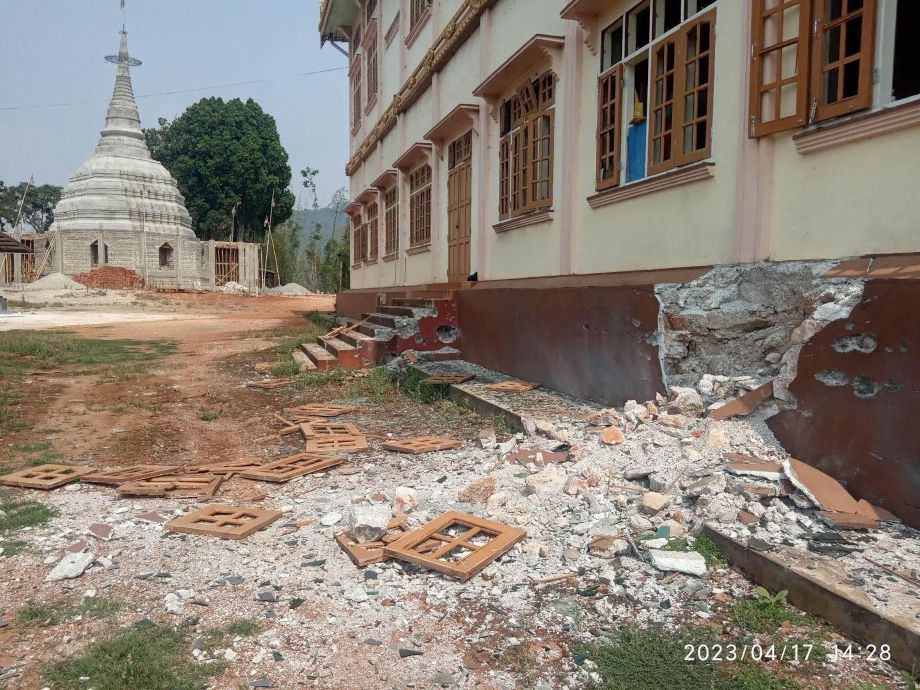 Artillery shells fired by the Military Council have caused damage to a monastery and several houses in Taung Methin Village, located in Pinlaung Township, Taunggyi District, Shan State.