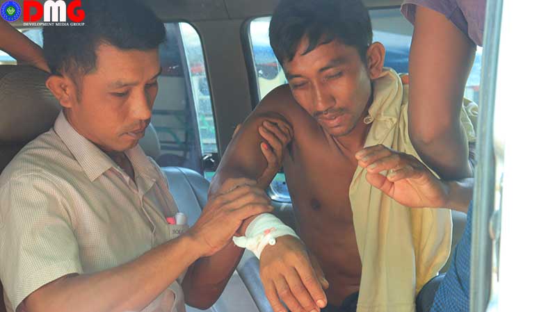 The victim sustained an injury to his left shoulder and was transferred to Sittwe General Hospital via Ponnagyun Hospital for medical treatment.