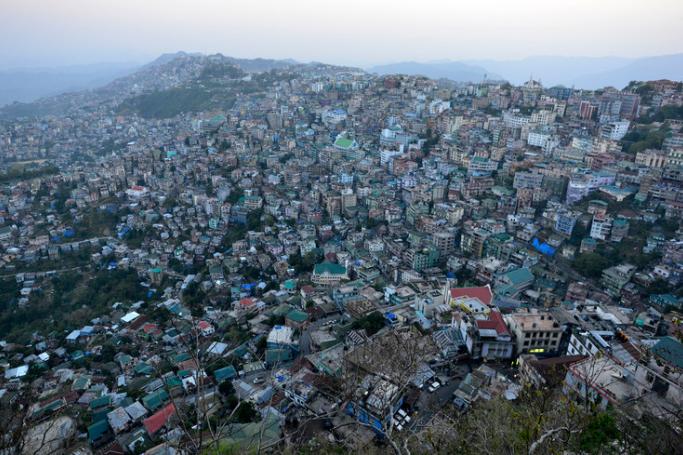 A bird's eye view at dusk, of Aizawl city, the capital of Mizoram India. Photo: EPA