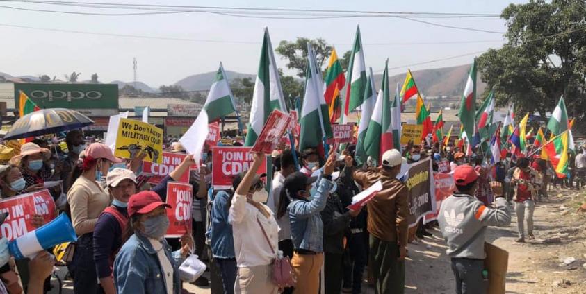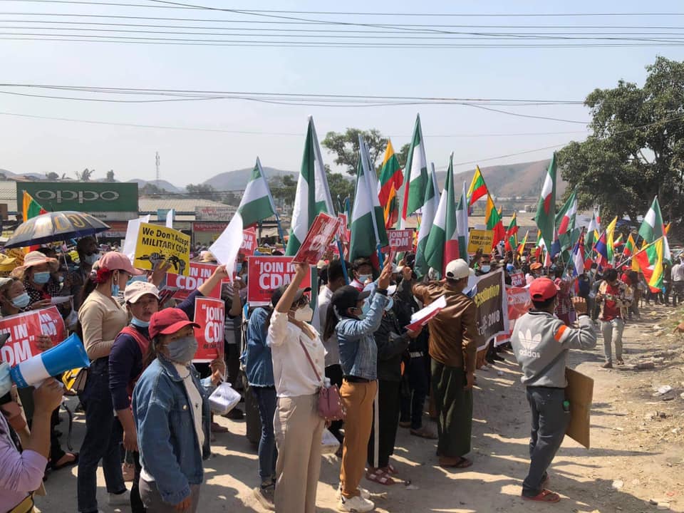 In Lashio, authorities arrested four demonstrators and another in Mongpan Township.