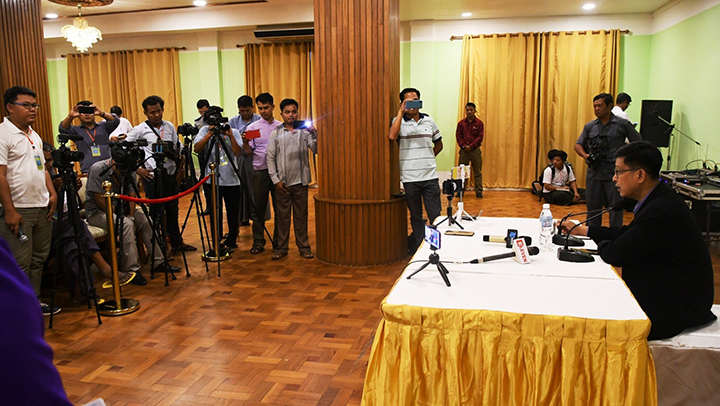 Photo: MNA / State Counsellor Office’s Director-General U Zaw Htay gives the press conference to local and foreign media in Kengtung, Shan State.