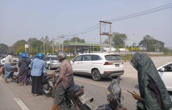 At around 2:00 p.m. junta soldiers shut off Shwe Hlaing and Malzalipin streets and used seven vehicles to carry out a search of the area.