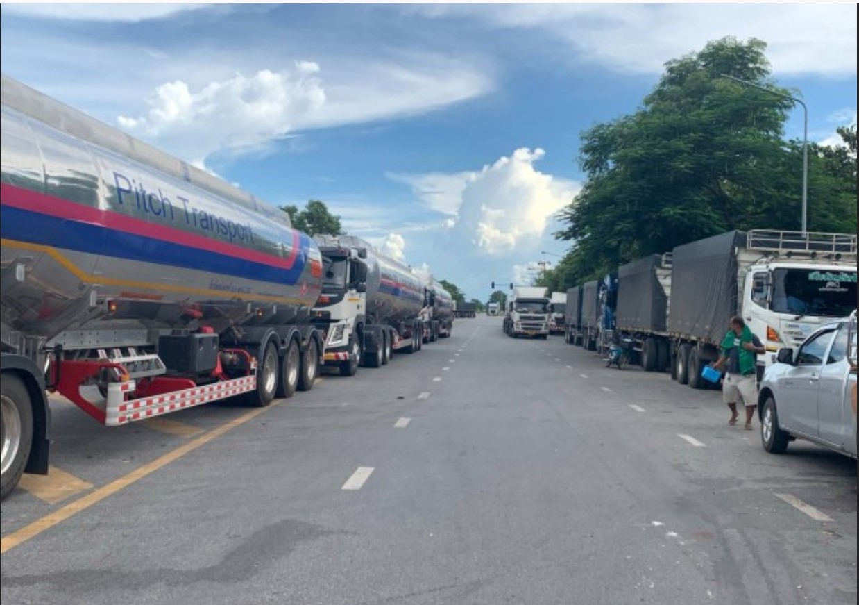 Border crossings have been reduced since September 17, creating a pile-up for Thai drivers of an estimated 600 trucks, which are carrying fuel, agricultural and food products, and other items. They are waiting to cross the Friendship Bridge, the main transport hub connecting the two countries.