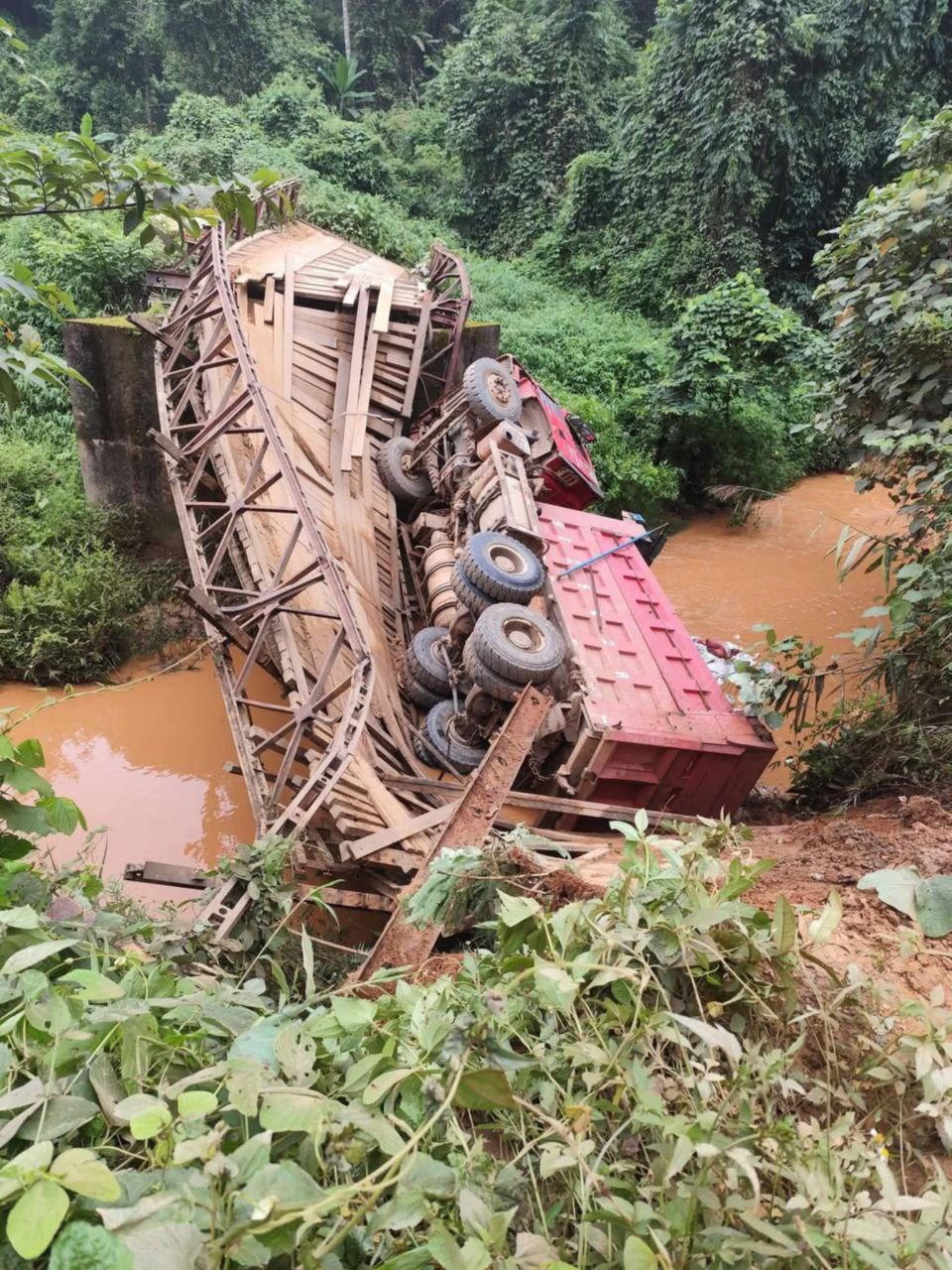 The bridge collapsed at around 9:00 am on 20 June 2025 as a lorry was crossing it. This happened because too many overweight vehicles had been using it instead of using a bypass route for heavy vehicles that goes through the river, according to a long-distance bus driver.