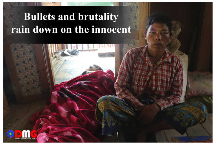 Drops of liquid were heard falling from the house to the ground, Daw Wai Nu Phyu, a family member of the house, first thought that her daughter who left on the house alone was peeing in her pants when she became scared of the sound of gunfire.