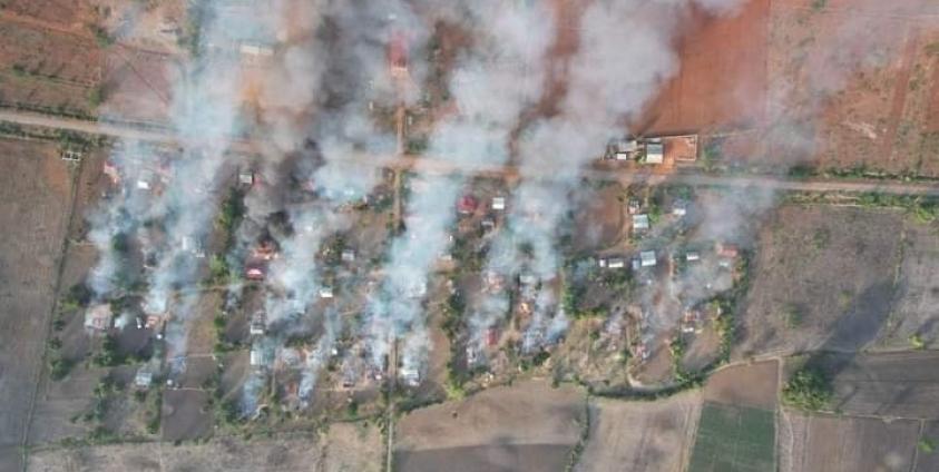 Local residents reported that regime forces attacked Saung Num Gae on Monday, setting fire to more than 40 houses in the village in Pekon (Phaikhun) Township.