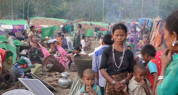 Rakhine ethnic people, who fled from a conflict area, gather at War Taung village’s temporary camp, in Kyauk Taw Township, in northern Rakhine State, Myanmar, on January 3rd. 2019. Photograph: Nyunt Win