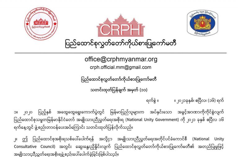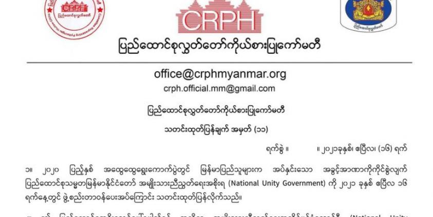 The Committee Representing Pyidaungsu Hluttaw (CRPH) said members of the National Unity Government (NUG) will include more from Burma's ethnic communities.
