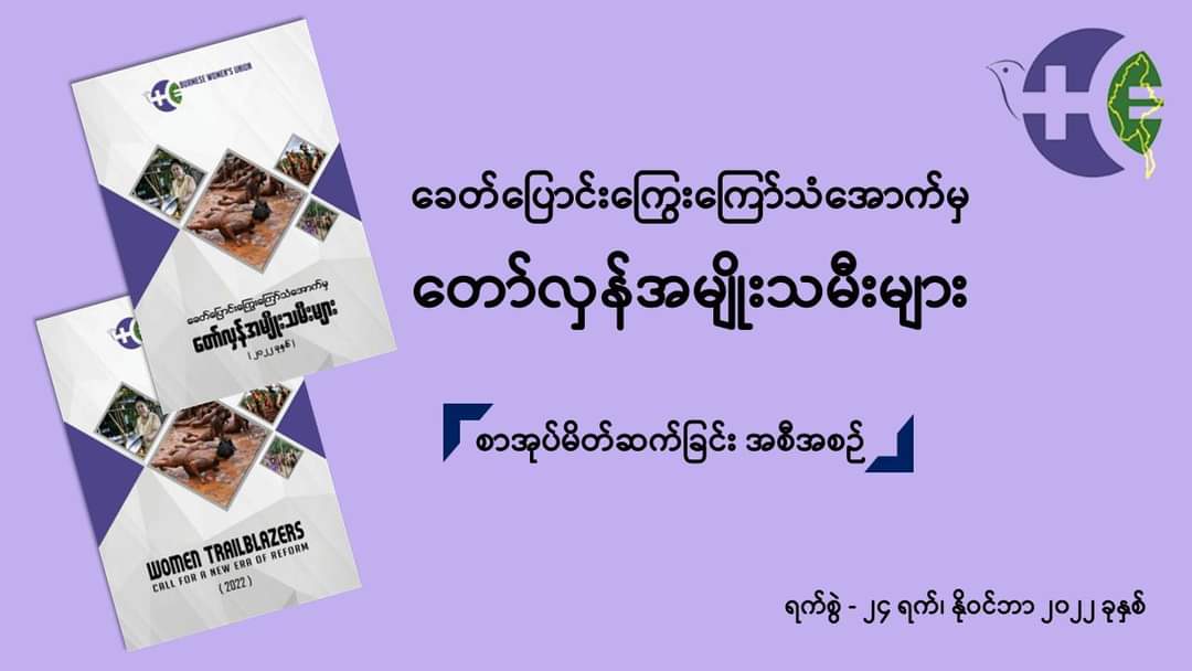 The Burmese Women’s Union (BWU) held a book launching event to introduce a documentary titled “Women Trailblazers – Call for a New Era of Reform”, and the role of women in the Spring Revolution written in both Myanmar and English, live online on November 24.