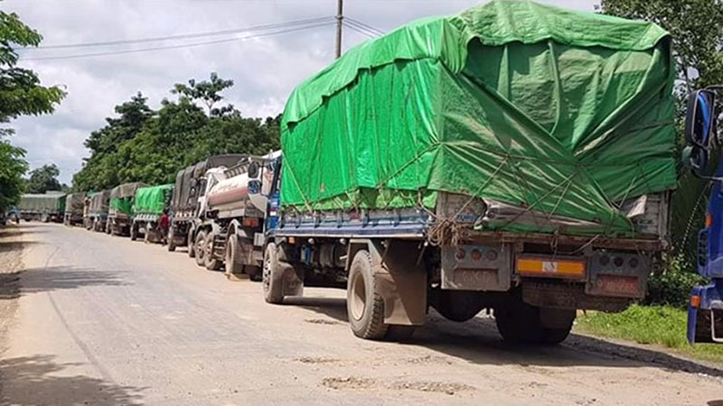 That section of road has been blocked recently due to hostilities near Mahamuni Pagoda in Kyauktaw Township and Mt. Linn Mway Taung in Mrauk-U Township.