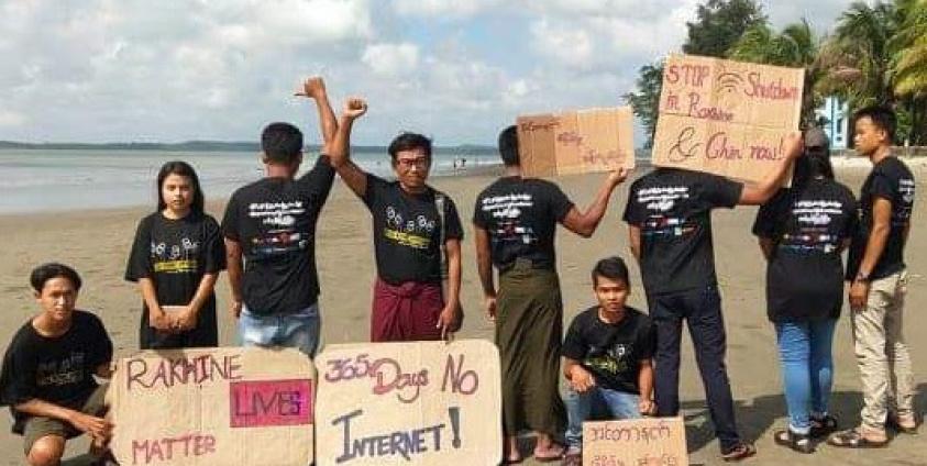 June 21 marks one year since internet services were suspended in seven townships in Rakhine and Paletwa in Chin state. Numerous civil society organisations and social activists from a number of towns and cities across the country, including Sittwe and Yangon, have staged events calling for internet services to be resumed. Many have posted pictures of their protest banners on social media networks.