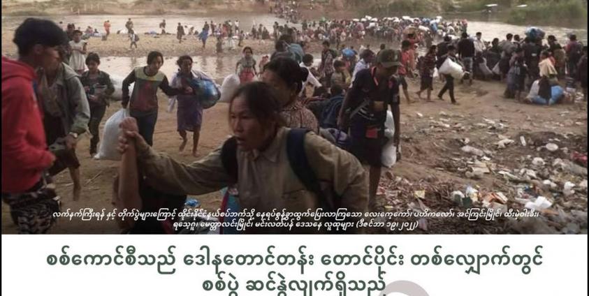 ကရင်ပြည်နယ်၊ မြဝတီမြို့ တောင်ပိုင်း ငြိမ်းချမ်းရေး မြို့တော် လေးကေကော်ဒေသမှစ၍ ကရင်အမျိုးသား အစည်းအရုံး-KNU၊ တပ်မဟာ (၆) ဒေသ၊ ဒူးပလာယာခရိုင် ထိန်းချုပ်ရာနယ်မြေများတွင် ဖြစ်ပွားနေသည့် တိုက်ပွဲများနှင့် သောင်းနှင့်ချီပြီး စစ်ဘေးရှောင်နေရသည့် စစ်ဘေးရှောင် ပြည်သူများအရေးနှင့်ပတ်သက်ပြီး ထုတ်ပြန်သည့် အစီရင်ခံစာတွင် ထိုသို့ တိုက်တွန်းလိုက်ခြင်းဖြစ်သည်။