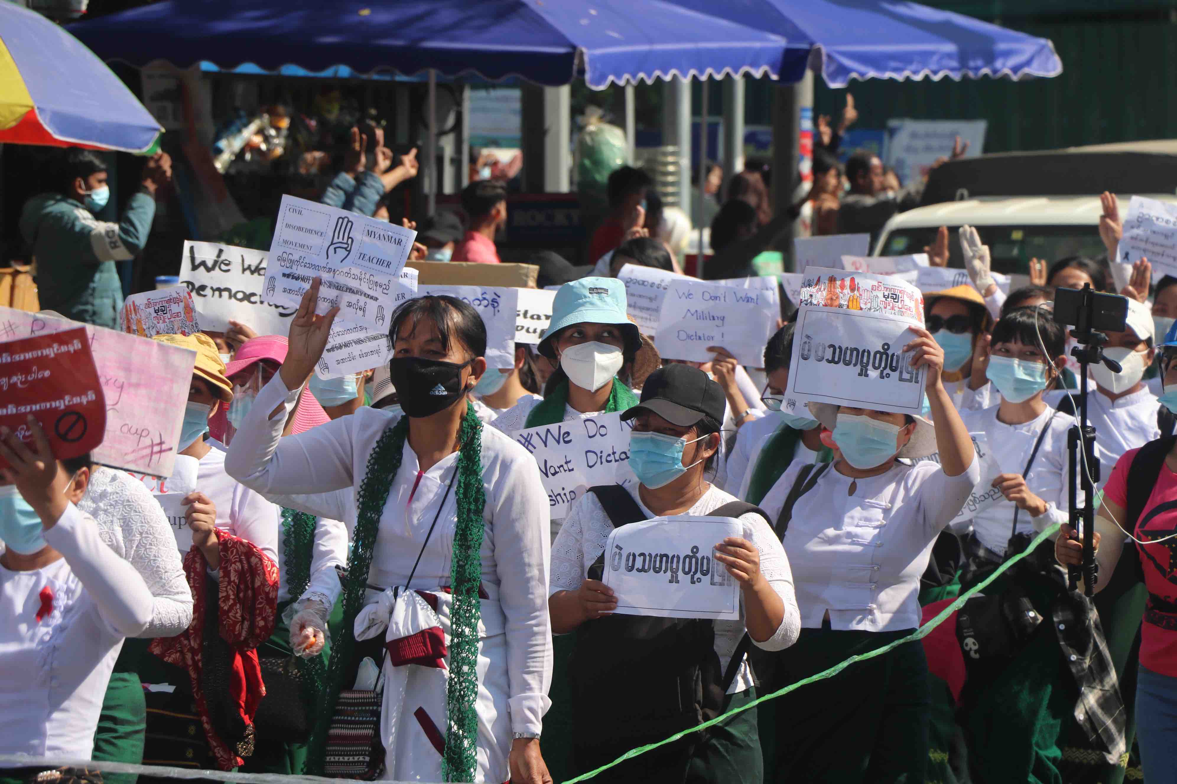 Following the coup, education staff took to the streets together with anti-coup protestors.