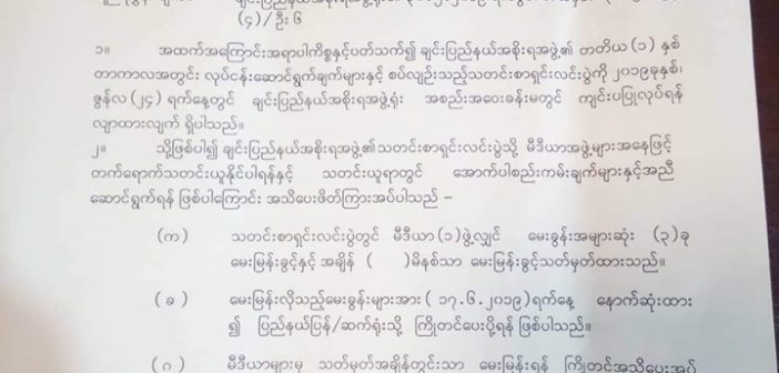 He added that the government would “not limit the questions” and that they “will answer all questions, whatever they ask.” The practice of demanding questions in advance has been used before at press conferences in Chin State, members of the media said, adding that, to their knowledge, it was not a standard practice in other states and regions.