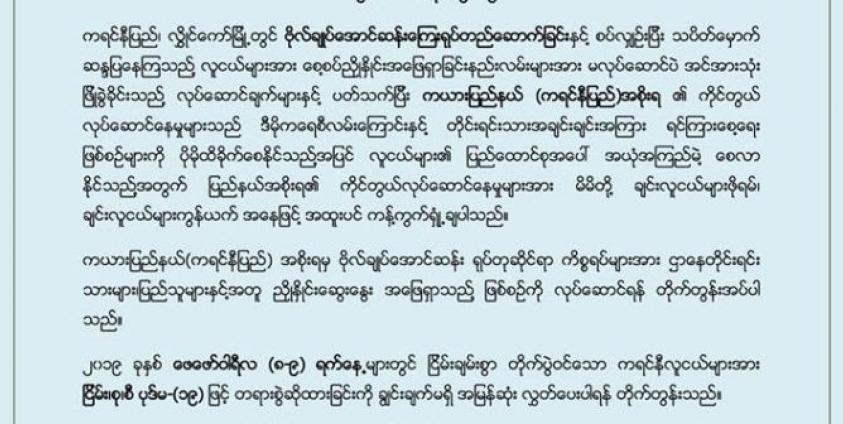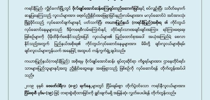 “The Kayah State government didn’t use negotiation to solve problems, but instead used excessive force to crack down on the protest against the Gen Aung San copper statue. This action is not in line with democratic norms and could damage reconciliation between ethnic groups,” the Chin Youth Network wrote in a statement. “For youth, this action puts little trust in the Union. Therefore, the Chin Youth Network strongly condemns it.”