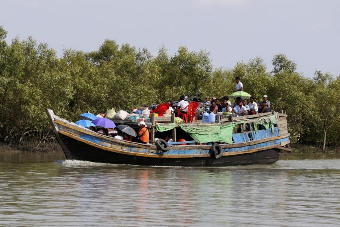 People travelling by boat in Sittwe, Rakhine State, western Myanmar. Photo: Nyein Chan Naing/EPA