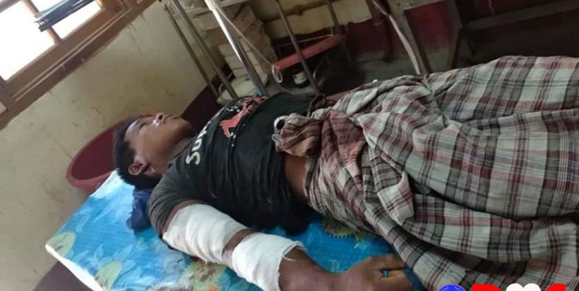 A policeman on sentry duty fired a gun and accidently hit the mason, an official of the outpost said. He received injuries to his right arm and temple and has been provided medical care at Maungdaw hospital.
