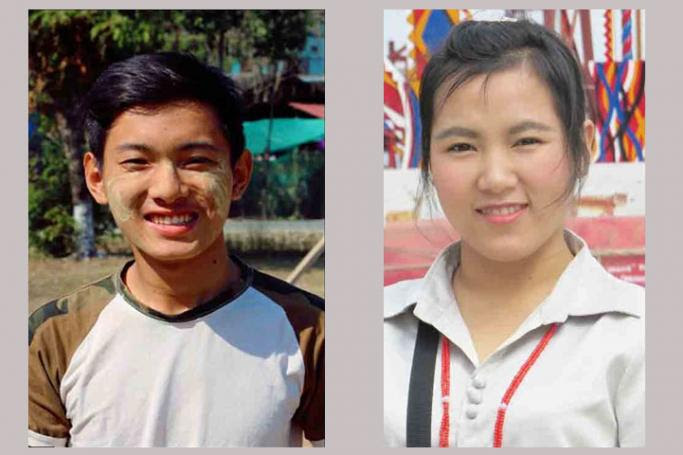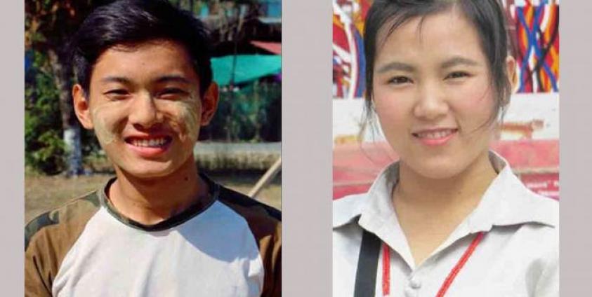 Ma Mon Mon Pan (right) and Ah Kyaw (left), reporters with the Burmese-language Myitkyina Journal newspaper.